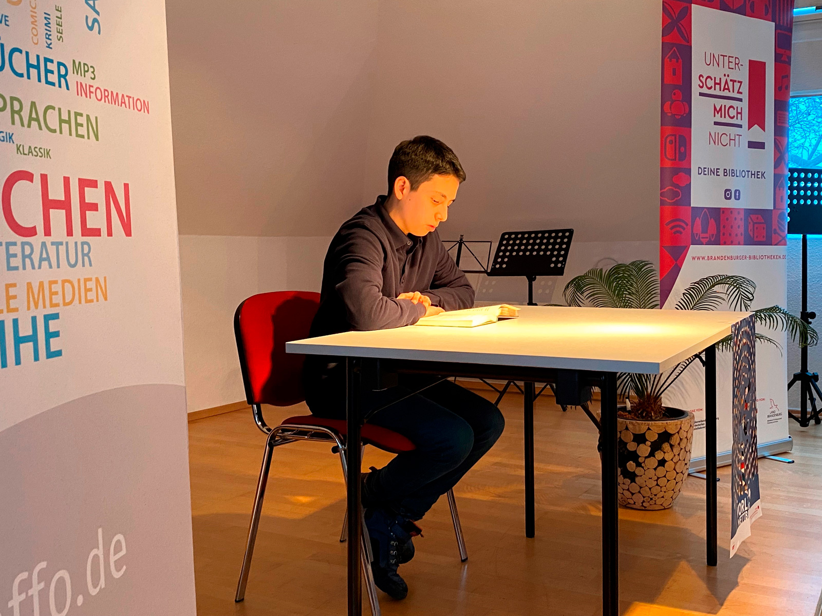 Atilla Cintosun las aus dem von ihm selbst ausgewählten Buch „Peanut Jones und die Stadt der Bilder“ von Rob Biddulph vor. Nun darf er im April zum nachfolgenden Bezirksentscheid fahren. Die Etappen führen von den Schulentscheiden über Stadt-/Kreis-, Bezirks- und Länderebene bis zum Bundesfinale mit den 16 Landessiegerinnen und -siegern im Juni 2024 in Berlin.