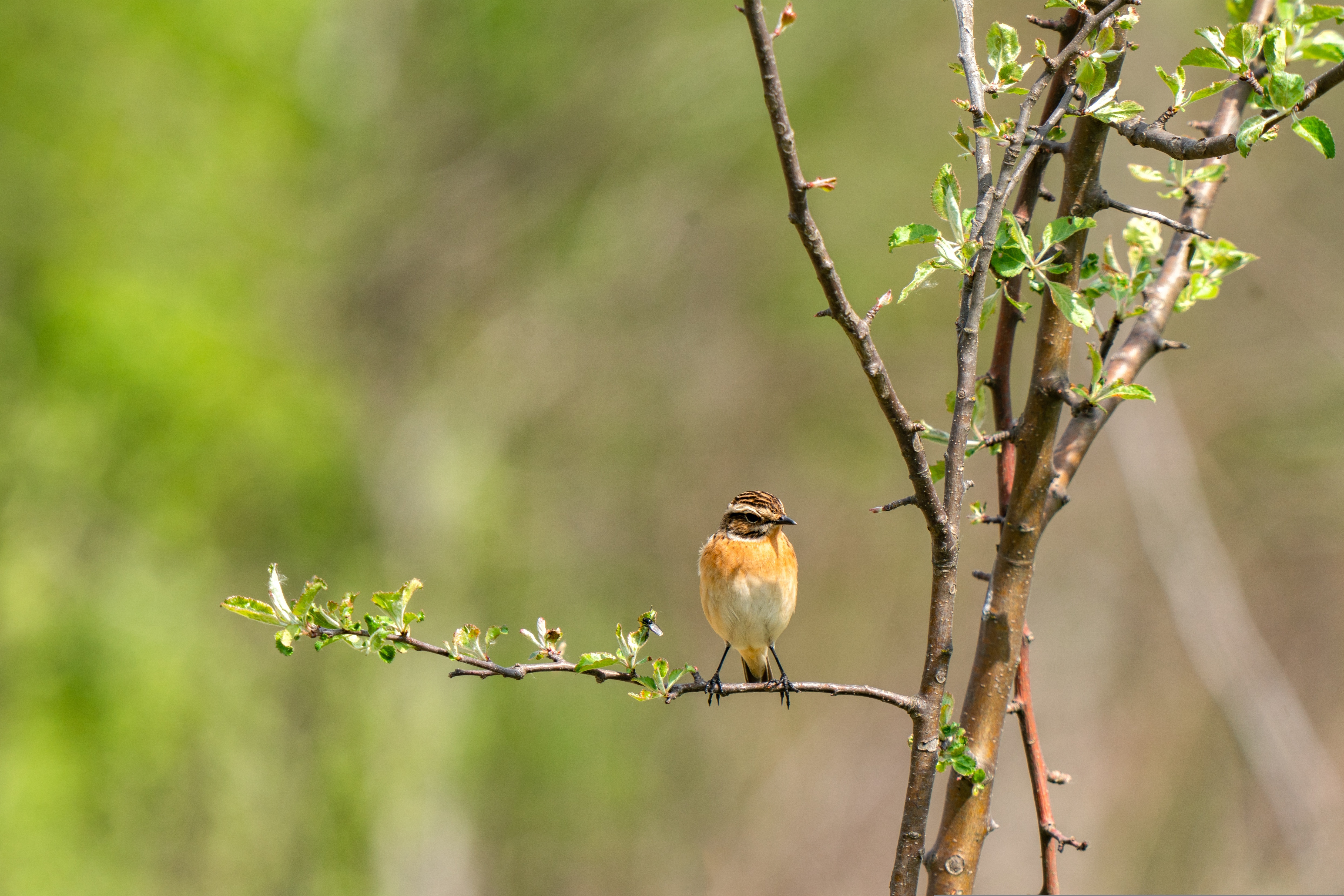 Das stark gefährdete Braunkehlchen (Rote Liste 2) kommt in den Oderwiesen noch vereinzelt vor. Als Langstreckenzieher überwindet es aus Afrika kommend 5.000 Kilometer, um hier zu brüten. Von Ende April bis Ende Juli befindet sich das Braunkehlchen im Brutgeschäft. Es nutzt einzelne Büsche, hohe Stauden oder Zaunpfähle als Sing- und Ansitzwarte.