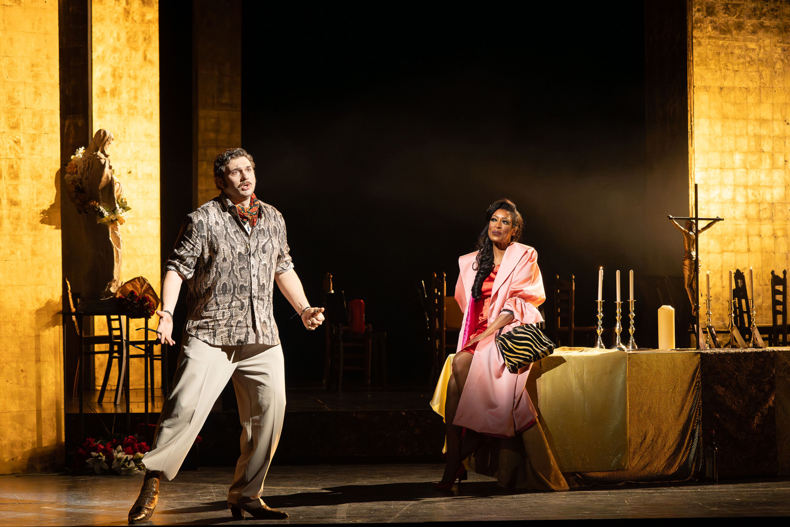 The diva Floria Tosca, adored by all, who only wanted to live for art and love, gets caught up in the power struggles of a corrupt political system after her lover falls into the hands of police chief Scarpia because he has given protection to a politically persecuted man. Scarpia combines his political power interests with an obsession for Tosca and spins a deadly intrigue.